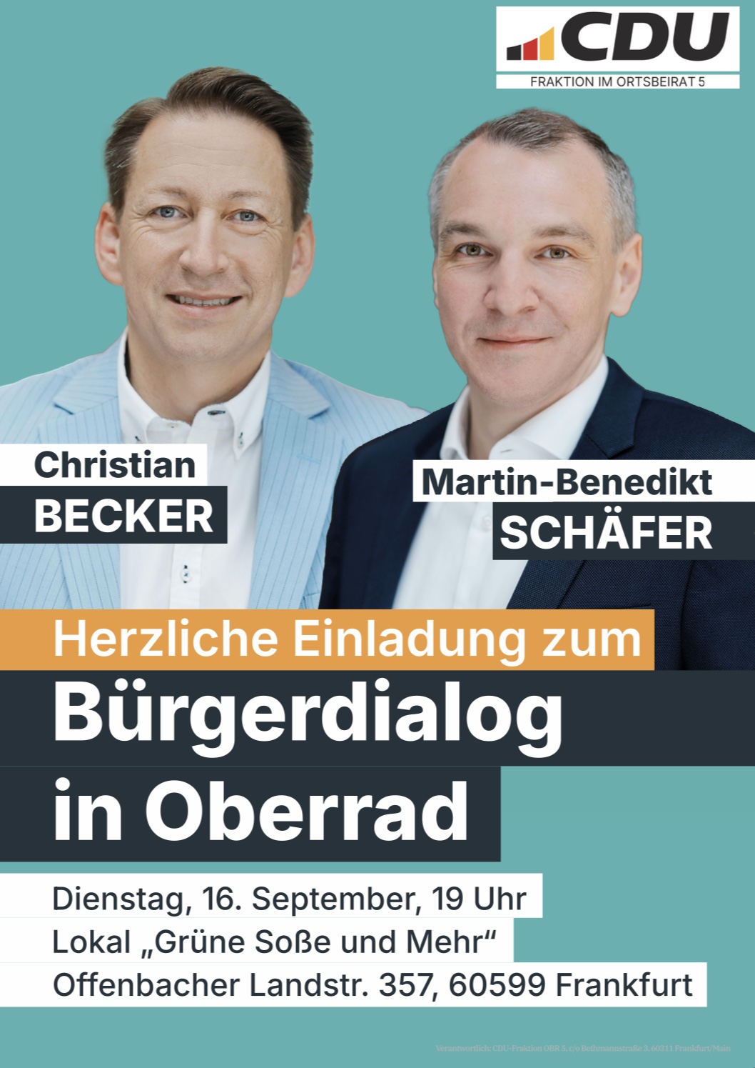 Auf der Webseite der CDU-Fraktion im Frankfurter Süden können Sie mehr über uns und unser politisches Engagement erfahren. Falls Sie Fragen oder Anregungen haben, nutzen Sie gern die angebotenen Kontaktmöglichkeiten. Vielen Dank für Ihren Besuch auf unserer Seite und das Interesse – auf bald!